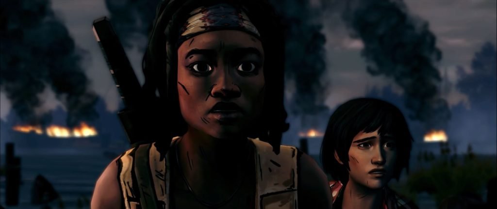 “In this tense second chapter, a daring escape from the floating colony of Monroe sees Michonne, Pete, and Sam running for their lives,” Telltale said in a statement. “An all too brief reprieve is soon shattered; the leaders of Monroe don’t forgive and don’t forget. With memories of her daughters bleeding ever further into Michonne’s blurred reality, her world is becoming increasingly fractured… just at the point when she’ll need all of her skills to survive.”