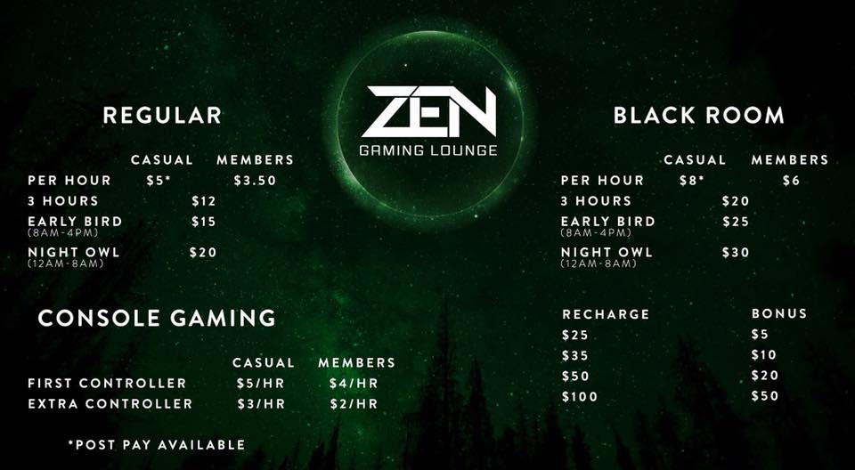 Zen Gaming Lounge runs 24/7 with a dedicated staff that runs up and down the stairs to do the best possible service for patrons. The place is equipped with some amazing quality peripherals including gaming chairs, headsets, keyboards, mouse, monitors and powerful PCs. It encourages socialization and community through its various events and tournament viewings. It is a game changer in the gaming center scene in Melbourne. I am looking forward to its continued growth and will be more than happy to spend some afternoons there!