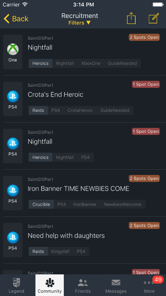 The recruitment forum group finder has been in the app since the beginning, “but it’s traditionally been a chaotic wall of potential Fireteams. We’ve had some ideas for how that could work better, and we’ve been executing on them. Very soon, we’ll be enhancing our forum with new ways to form up and roll out into the Solar System.”